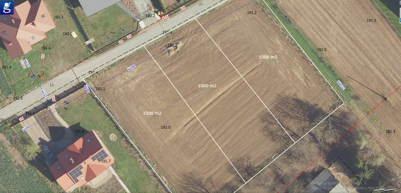 Jest to najmniejsza możliwa powierzchnia do uzyskania przy podziale działki macierzystej o łącznej powierzchni 2990 m². Istnieje również możliwość wydzielenia działek o powierzchni 1000 m² oraz