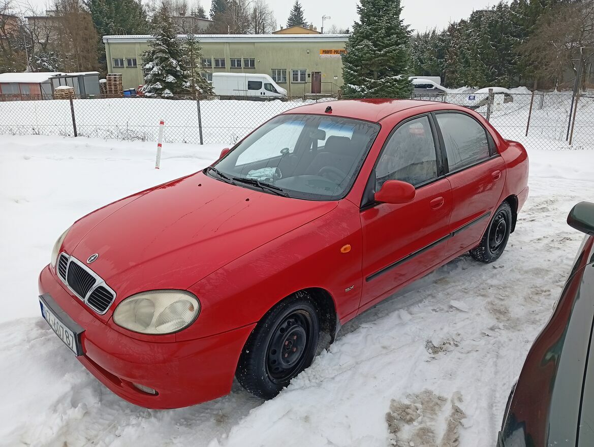 Ładny, zadbany FSO Lanos 1,6 SI sedan, benzyna - 106 kM. Zwinny i szybki - sprawdzone. Łatwy do parkowania. Spalanie ok. 7 L/100 km. Bez wkładu finansowego ! Ubezpieczenie lipiec, przegląd czerwiec . Pali na dotyk, hamulce bardzo dobre. Nowe sprzęgło - 1700 zł, wymienione filtry i olej, wszystkie poduszki - kolejne 800 zł. Opony 14 w dobrym stanie, ręczny igła. Elektr. szyby przednie, immobilizer, alarm, dwa kluczyki - w tym jeden z pilotem, radio, klimatyzacja, ASR, wielofunkcyjna kierownica, poduszki powietrzne, tapicerka welurowa. Niewielki przebieg 186 tys. Bez rdzy (blacha ocynk) i większych zadrapań, lakier b.dobry - jak widać na foto - zrobione 25.01. Dorzucam 2 dobre opony zimowe. Sprawdzone na A4 - 180 km/h. Cena do niewielkiej negocjacji. W użytkowaniu od 3 lat - zakup nowego auta sprawił, że jest mało użytkowany. Jeśli jest taka potrzeba mogę wysłać więcej foto na maila.Powiadom o podobnych ogłoszeniach