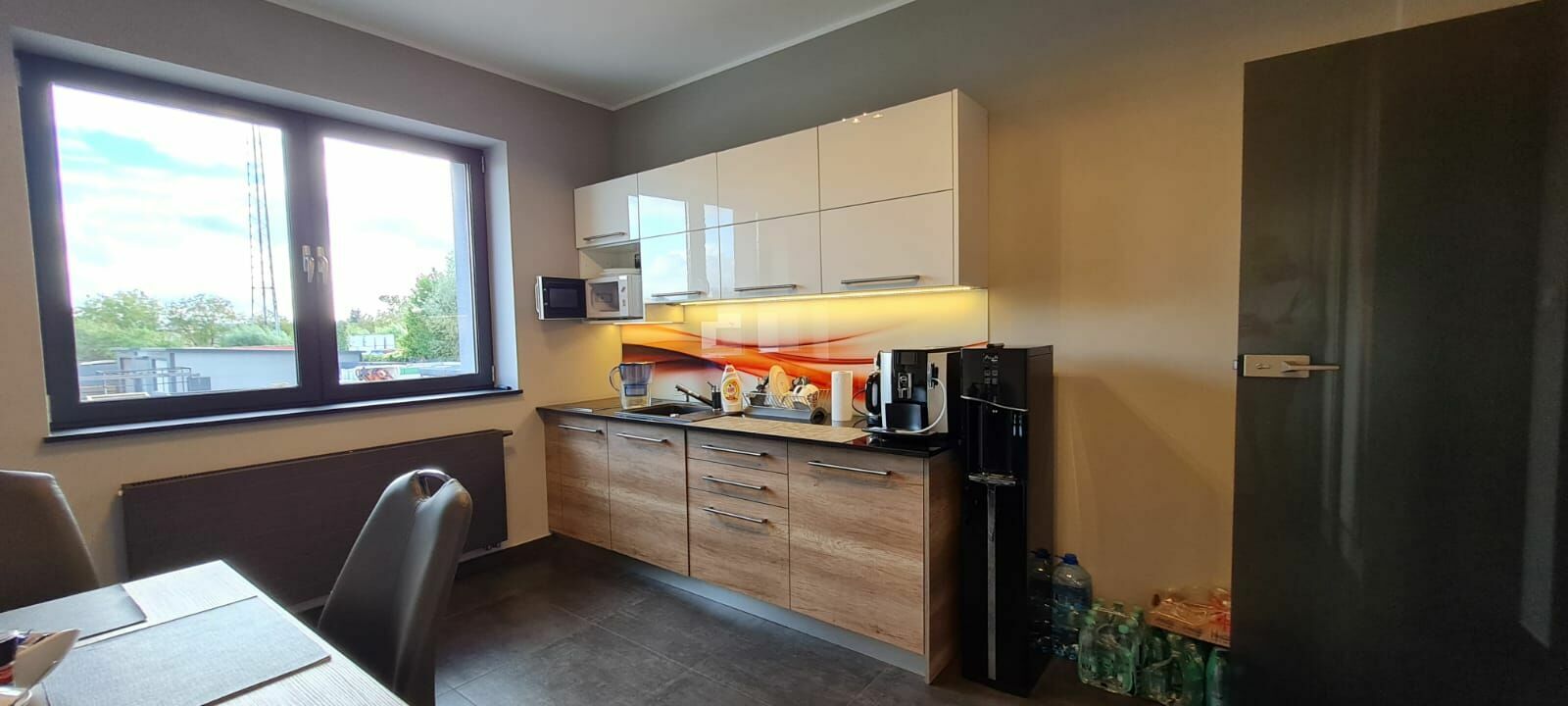 Magazyny , pom socjalne (szatnia, kuchnia, jadalnia, toalety) portiernia łącznie około 512mkw pow. użytkowej,