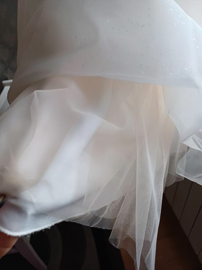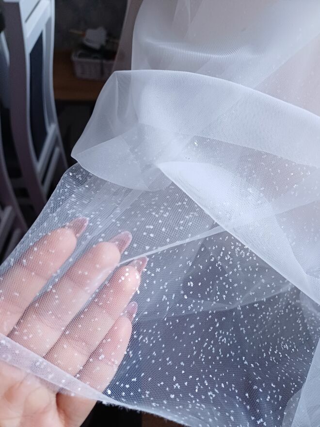 *6 warstw tiulu ( jedna w odcieniu brzoskwiowym oraz jedna bardzo błyszcząca)