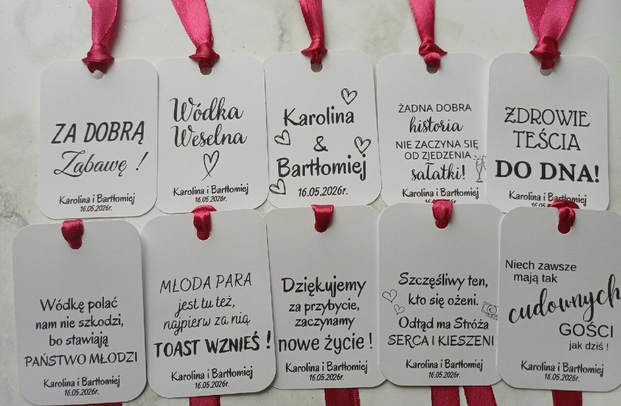 Zawieszki na alkohol wódkę weselną urodzinową personalizowane